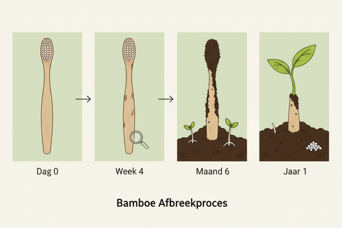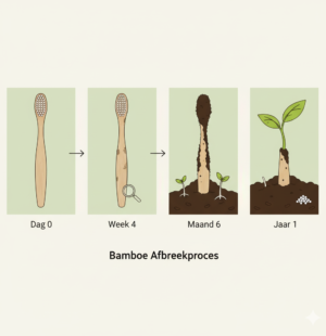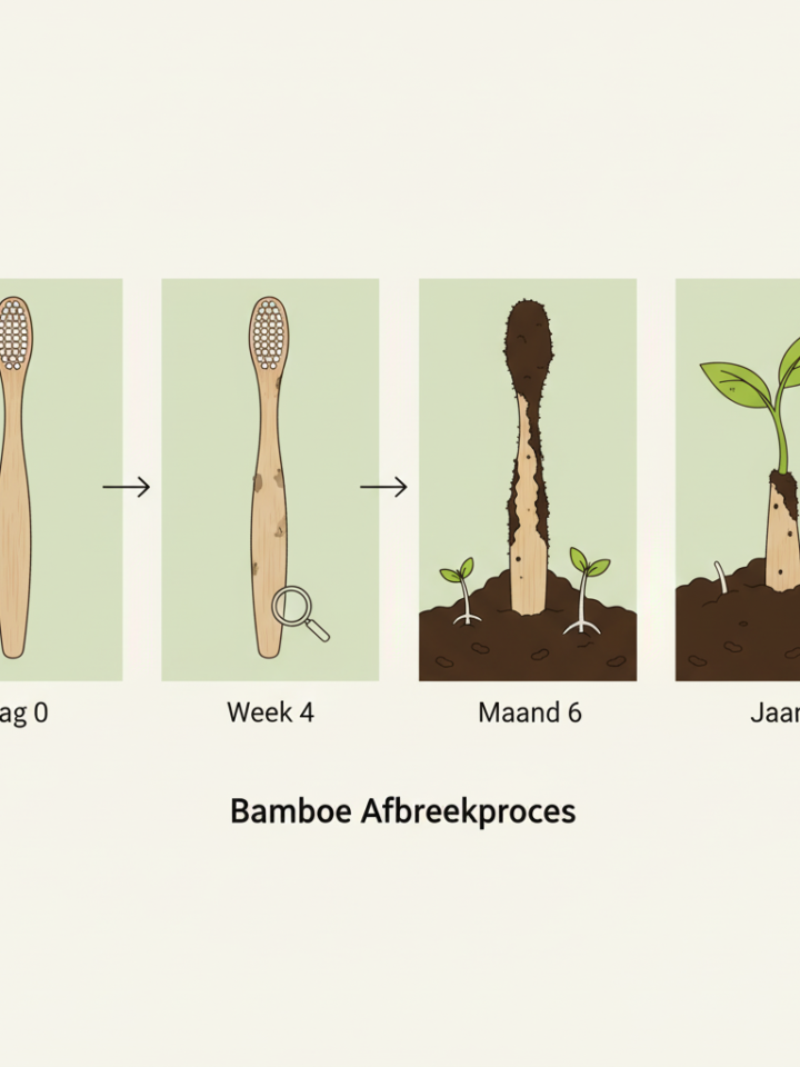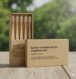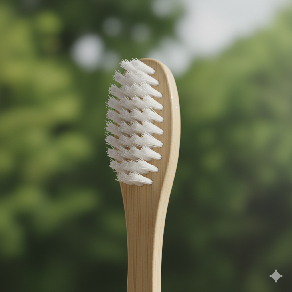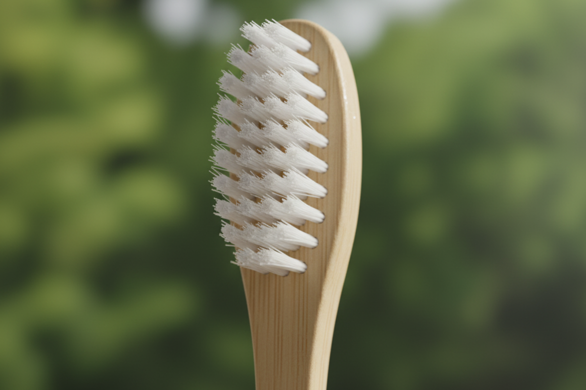 Een duurzaam alternatief voor plastic tandenborstels, gemaakt van 100% biologisch afbreekbaar bamboe.