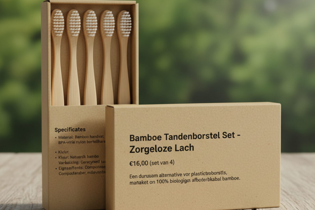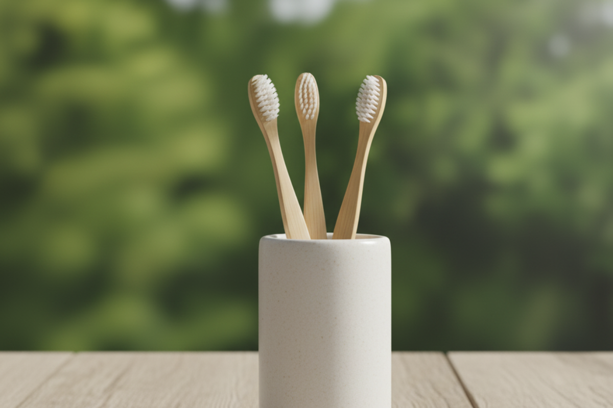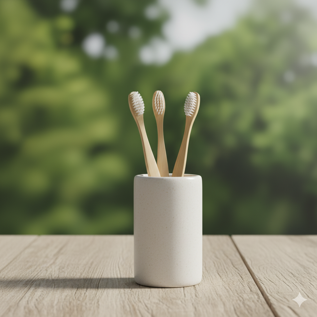Een duurzaam alternatief voor plastic tandenborstels, gemaakt van 100% biologisch afbreekbaar bamboe.