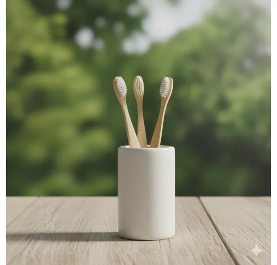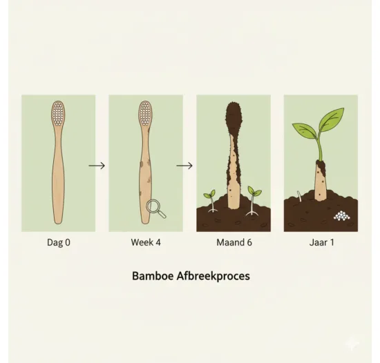 Een duurzaam alternatief voor plastic tandenborstels, gemaakt van 100% biologisch afbreekbaar bamboe.