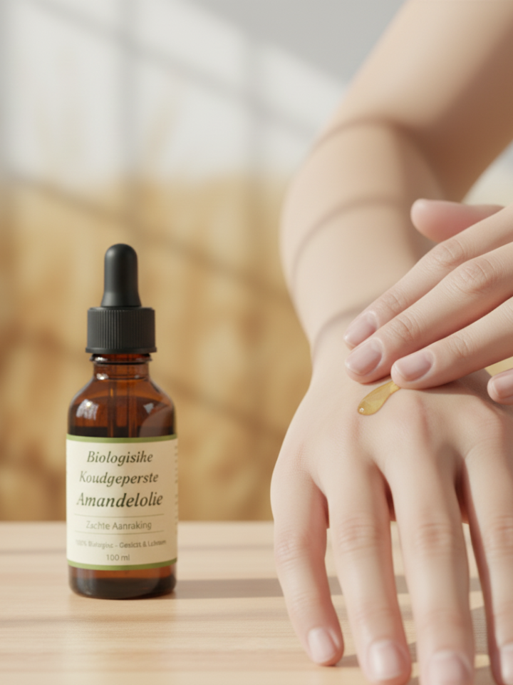 Een pure, koudgeperste amandelolie die perfect is voor gezichts- en lichaamsverzorging. Vrij van chemicaliën en 100% biologisch.