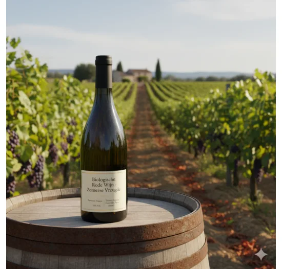 Een heerlijke biologische rode wijn uit de Franse Provence, gemaakt van druiven die geteeld zijn zonder pesticiden of herbiciden.