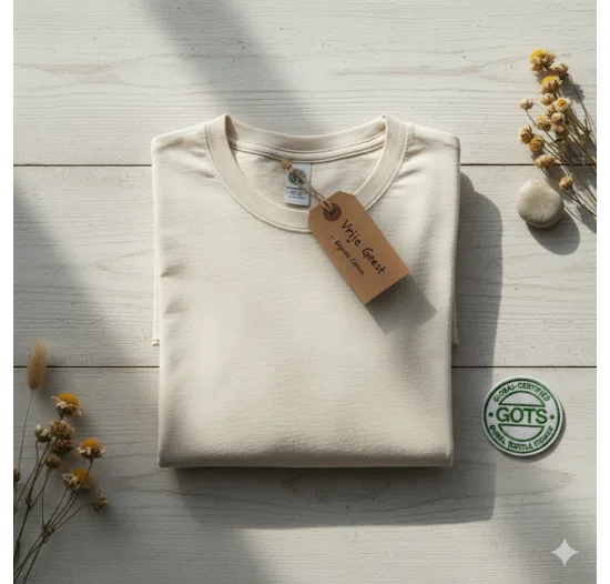 Dit T-shirt is gemaakt van 100% GOTS-gecertificeerd biologisch katoen, zacht voor de huid en de planeet. Het perfecte basisstuk voor een duurzame garderobe.